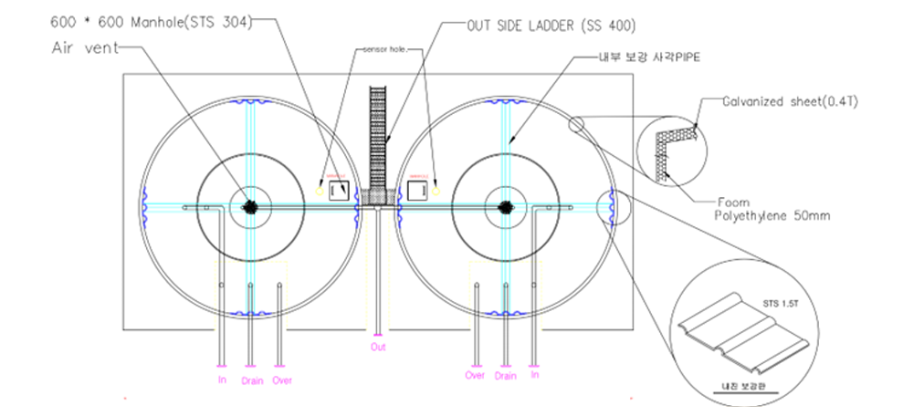 | 물탱크(2종 도류벽형) | STS/원통형/보온(2종 도류벽) | HJG-0100, 100t/d | 100톤 | 25817291 |