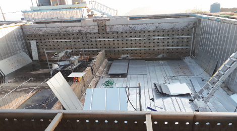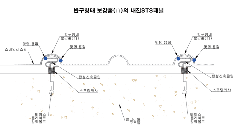 - 스테인리스 판재를 ∩형 내진패널로 제작하여 현장에서 용접 및 시공함.
