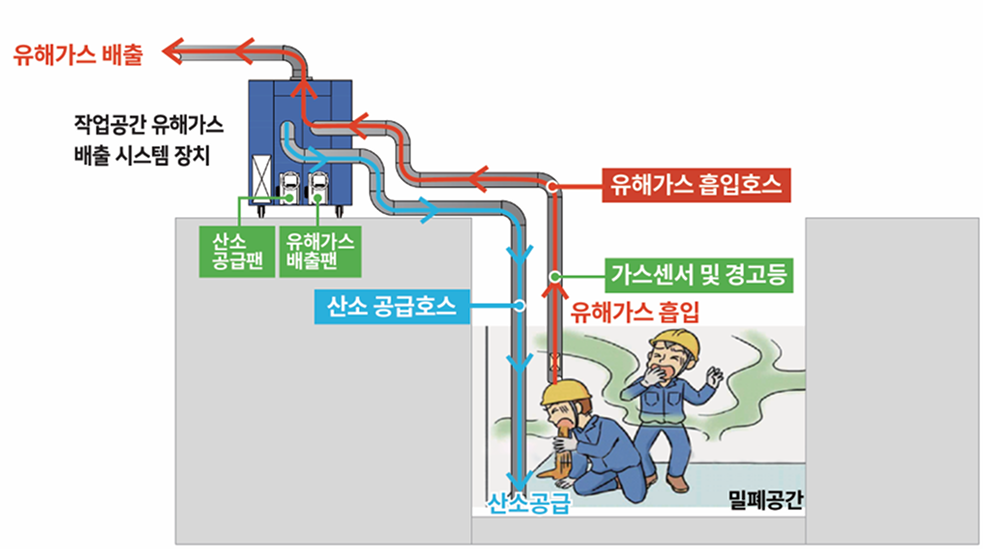 밀폐공간 질식사고 예방을 위한 유해가스 배출시스템 설치 근거